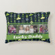"Lucky Daddy" St. Patrick's Day Kissen. Personalisieren Sie dieses charmante Design für einen glücklichen Vater, um seine Kinder zu zeigen. Ideal für eine frische, moderne Ästhetik. Niedliche Kleeblätter, vierblättriges Kleeblatt, Blume und Blätter, die in Streifen angeordnet sind, bilden dieses reizvolle Muster. Schöne Frühlingsszenarien, Grüntöne und Gelbtöne mit gedämpfter Blues machen dies zu einem lebendigen, aber dennoch anspruchsvollen und auffälligen Design. Dieses Kissen kann mit sechs (6) Fotos - drei (3) vorne und drei (3) hinten individuell gestaltet werden. Personalisieren Sie den Text vorne und hinten. Wechseln Sie Papa zu Vater, Pop, Papa, Vater, Pater oder Ihrem Lieblingsnamen.