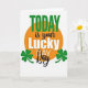 This design shows a bright orange circle centered on a white background, holding the upbeat message “TODAY is your LUCKY DAY” with a lucky-day wink between friends 💚. “TODAY” sits at the top of the circle in emerald green, set in a simple sans‑serif style that feels steady and confident. Just below it, “is your” appears in black, flowing lettering that softens the layout like a gentle aside. “LUCKY” lands in the middle in crisp white uppercase, standing out sharply against the orange like a spotlight moment. The word “DAY” follows in the same black flowing lettering, balancing the line and keeping the rhythm easy on the eyes. Two matching green shamrocks nestle near the lower left and lower right edges of the circle, framing the message like a shared secret ☘️. The greens, orange, black, and white stay neatly separated, and the shamrocks mirror each other at the bottom corners of the orange circle.