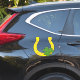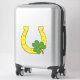 Lucky Golden Horseshoe mit Kleeblatt auf Schwarz Aufkleber