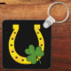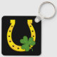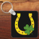 Lucky Golden Horseshoe mit Kleeblatt auf Schwarz Schlüsselanhänger