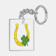 Lucky Golden Horseshoe mit Kleeblatt auf Weiß Schlüsselanhänger