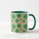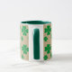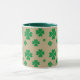 Gaume grüne vierblättrige Kleeblatten auf beige Tee oder Kaffee-Tasse. Das grüne vierblättrige Kleeblatt erinnert an die allwissende Liebe der Natur.
