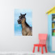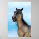 3D digitale Darstellung eines niedlich lächelnden Grullienpferdes mit blauen Augen auf blauem Himmelshintergrund. Perfektes Geschenk für alle, die Spaß und Lachen Lieben haben