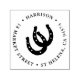 Mit unserer Hufeisen-Rücksendeadresse-Briefmarke, die ein Hufeisenpaar umringt durch Ihren Nachnamen und Ihre Rücksendeadresse enthält, verleihen Sie allen Ihren Sendungen handgestempelten Charme.
