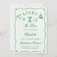 This editable bachelorette invitation features a chic green and white striped background, classic lucky symbols like dice, horseshoes, martini glasses, cherries, and four-leaf clovers, and elegant script typography that feels elevated yet lighthearted. The front announces the celebration in a fun, whimsical way, while the back is thoughtfully designed as a complete bachelorette weekend 4-day itinerary, allowing guests to see the full schedule at a glance — perfect for destination trips and group travel planning.