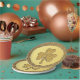 Dieses phantastische Set von Party-Tellern aus Papier zeigt ein grafisches Bild einer Goldmünze mit zwei Goldtönen. Der äußere Kreis hat eine grobe Textur. Im inneren Kreis der Münze befindet sich ein goldenes Kleeblatt, bestehend aus 3 Blätter und einem Stamm.