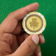 Dieses phantastische Set von Poker-Chips zeigt ein grafisches Bild einer Goldmünze mit zwei Goldtönen. Der äußere Kreis hat eine grobe Textur. Im inneren Kreis der Münze befindet sich ein goldfarbenes Kleeblatt, bestehend aus 3 Blätter und einem Stamm.