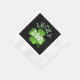 Lucky Irish Kleeblatt St Patricks Party Papier Napkins Design mit einem anpassbaren schwarzen Hintergrund und ein großes grünes Kleeblatt vierblättriges Kleeblatt in der Mitte. "Lucky Irish" ist in hellgrün und weiß dekorativen Buchstaben. Ein cooles Design für ein St. Patrick's Day Party.