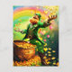 Ein fröhlicher Kobold in leuchtend grünem Gewand wirft fröhlich goldene Münzen, umgeben von farbenprächtigen Herzen und einem pulsierenden Regenbogen. Ein Topf voller Gold sitzt in der Nähe und symbolisiert Glück und Wohlstand. Digitale Kunstfotografie CS6