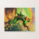 Ein fröhlicher Kobold in leuchtend grünem Gewand wirft fröhlich goldene Münzen, umgeben von farbenprächtigen Herzen und einem pulsierenden Regenbogen. Ein Topf voller Gold sitzt in der Nähe und symbolisiert Glück und Wohlstand. Digitale Kunstfotografie CS6