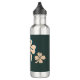 Dunkelgrünes Kleeblatt Klee Zeichnend St. Patrick`s Day Wasserflasche. Handgezeichnet Klee mit vier Blätter für das Glück auf dunkelgrünem Hintergrund.