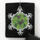 Is Day Irish clover holiday decor description? Celebrate the luck of the Irish with this whimsical snowflake ornament featuring a festive black cat dressed as a dapper leprechaun this ornament captures the kitty mid jig against a vibrant backdrop of four leaf clovers and green top hats the high-quality circular image is framed by a beautiful silver toe snowflake design making it a perfect unique gift for cat lovers or charming addition to your holiday tree whether you're celebrating Saint Patrick's Day or looking for a lucky charm for the winter season this dancing cat is short to bring a smile to everyone's face