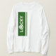 Weißer, langärmeliger T - Shirt mit einem Bild des Wortes "Glück" in weißer Schrift, mit einem Kleeblatt für den Buchstaben u, auf einem dunkelgrünen Hintergrund auf der links Seite, zusammen mit zwei grünen Button Streifen. Die gesamte Bekleidungskollektion des St. Patrick's Day in den SPEZIELLEN TOUCHS | Abschnitt Gastgeschenke.