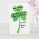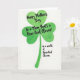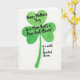 This card features a watercolor four-leaf clover centered on a bright white background, its heart-shaped leaves shaded in layered emerald and moss greens with soft brush textures. The clover feels like a lucky little emblem of closeness, as if it’s being offered with the kind of quiet affection you’d share with someone who always has your back 💚. Across and around the clover, black lettering curls through the open spaces, drawing your eye along the leaves as you read. The message says, “Happy Mothers Day to a Mom that's a Four-leaf Clover! in a world of three-leaf Clovers.” with the longer line stretching across the middle and trailing toward the lower area. The contrast between the dark text and the green paint makes the words easy to spot without overpowering the artwork. Subtle watercolor pooling and uneven edges give the clover a natural, lived-in look, like it was painted slowly with care. A small touch of luck comes through in the clover’s shape and the gentle green tones, with a hint of ☘️ energy in every leaf. The final look is a centered green clover with black text layered over it, framed by wide white space on all sides.