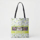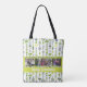 "Lucky Grandma" St. Patrick's Day Tote Tasche. Personalisieren Sie dieses charmante Design für eine glückliche Oma, um ihre Enkel zu zeigen. Ideal für eine frische, moderne Ästhetik. Niedliche Kleeblätter, vierblättriges Kleeblatt, Blume und Blätter, die in Streifen angeordnet sind, bilden dieses reizvolle Muster. Schöne Frühlingszeit Grüntöne und Gelb mit gedämpfter Blues machen dies zu einem lebendigen und dennoch anspruchsvollen und auffälligen Design. Weißer Hintergrund. Diese Tasche wird mit sechs (6) Fotos - drei (3) vorne und drei (3) hinten angepasst. Personalisieren Sie den Text vorne und hinten. Ändern Sie Oma zu Nana, Grammy, Gigi, Abuela, Gran, oder Ihren Lieblingsnamen.