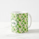 Holen Sie sich Ihr irisches Glück mit diesem wunderschönen St. Patrick's Day Becher! Helle grüne Shamrocks auf einem hellen Tannenhintergrund werden sicherlich ein Favorit sein. Personalisieren Sie es mit Ihrem Namen in einem ovalen Abzeichen.