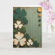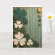 This design shows a cascade of shamrocks climbing from the lower left corner up the left edge, then spreading outward in a gentle diagonal, like they’re reaching toward someone just out of frame 💚. The setting is a vertically ridged, corrugated-metal background in muted sage green, weathered with rusty specks and streaks that give it an aged, timeworn look. The clovers alternate between deep earthy greens and soft off-white, and several have thin golden-brown edging that makes them stand out from the surface. Their raised look and slight shadows add depth, as if the pieces were carefully placed with the kind of attention you’d give a close friend. On the right side, three round, aged metal discs sit in a loose cluster, echoing the green and gold tones and balancing the heavier shamrock side ☘️. Any greeting text would sit comfortably in the open space on the right in a dark green or warm gold, leaving the shamrocks unobstructed. Light falls across the ridges and edges, catching the worn texture and the clovers’ outlines against the mottled green-and-rust backdrop.