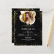 Eine moderne, stilvolle und glamouröse Einladung für eine 21-jährige Geburtstagsparty. Schwarzer Hintergrund, mit Imitaten goldenen Glitzer Glitzern und goldenen Ballons dekoriert. Personalisieren Sie Ihren Namen, Ihr Foto und Ihre Party. Ein Foto im Ballonstil. 1 Blatt = 1 Einladung mit Druckkante bis zur Kante