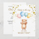 Personalisieren Sie diese Aquarell Teddy Bären mit farbenfrohen Ballons Design Front: wir können SCHÖN WARTEN zurück: Einladung Details für Sie anpassen.