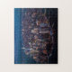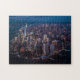Luftbild Manhattan schoss bei Dämmerung von oben auf dem Fluss.