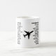 weiße Tasse mit den Lautalphabetpiloten verwenden beim In Verbindung stehen vom Flugzeug.
