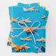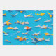 Einzigartige Verpackungsblätter mit einem Muster von Flugzeugen auf hellblauem Hintergrund.