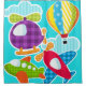 Farbenfrohe und lustige Kinder duschen den Vorhang, der perfekt für den kleinen Piloten ist, der Flugzeug und Fliegen Liebe, mit einem blauen Himmel mit Wolken, zwei Flugzeugen, einem Hubschrauber und einem Heißluftballon!