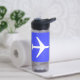 Stilvolle und funky White Flugzeug Aircraft Blue Background Water Flasche zu Ihrer Sammlung hinzuzufügen. Ein cooles Geschenk / Geschenkidee für alle, die individuelle Design-Objekte, positive Vibes, Fliegen, Luftfahrt, Freiheit, Reisen, Minimalismus etc. Liebe. Ändern Sie die Hintergrundfarbe (blau), um Ihren eigenen Geschmack, Ihre Bedürfnisse und Stil Anzug. Fluglinien, Fluggesellschaften, Junge, Mädchen, Hobby, Fliege, Navigation usw.