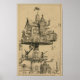 Dies ist ein Ausdruck der antiken 1883 Tinte über Grafit der Illustration von "Maison tournante aérienne". Der zeichn zeigt eine Wohnstruktur, die sich über Dächern erhebt und so konzipiert ist, dass sie sich in verschiedene Richtungen drehen und anpassen kann. Ein Bewohner zeigt auf ein Luftschiff mit einer fischförmigen Tasche im Himmel unten rechts. Eine der Vorstellungen des Künstlers für sein Buch über das Leben im kommenden zwanzigsten Jahrhundert.von Albert Robida