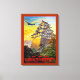 Vintages japanisches Lufttransportplakat mit einem Propellerplan und einem Pagode-Tempel.