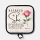 Luke 1:45 Gesegnet ist Sie Rose Blume Topflappen