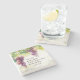 Untersetzer aus Stein mit inspirierender Zitat-Schrift zeigt eine wunderschöne Naturwasserfarbe mit lila Weintrauben, die an einer Rebsorte hängen. Es enthält einen Teil des Parabels Jesus, der in Bibel Verse Luke 5:37 gelehrt wurde: "Niemand bringt neuen Wein in alte Weinkeller."