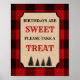 Geburtstage sind Sweet Bitte nehmen Sie eine Leckerei Geburtstagsparty Sign - Lumberjack Red Kariert Design.