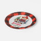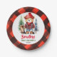 Lumberjack Party Teddybär in Lumberjack Kleidung und Stiefel Tannenbaum und Holz, rot grün, schwarz, Denim Farben, Büffel kariert personalisiert Paper Teller.