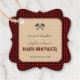 Rustikales Jagdmotiv-Design: rote Büffel BABY SHOWER Typografie, eine alte Papierform mit gepunktetem Rahmen, zwei Brüte, alle auf einem roten schwarzen Büffel kariert als Hintergrund. Verwenden Sie das Tool Personalisieren, um Ihre Informationen hinzuzufügen. Red Buffalo Kariert/Lumberjack Birthday Collection.