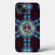 Custom iPhone 5 Hüllen mit hellen Leuchtenblau und dunkelrustikalen Rot, Muster zentriert mit einem psychedelischen Friedenssymbol - filmisch webgrl.art