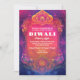 Die "Lumineszenz Lotus Invitation" strahlt mit dem lebendigen Geist Diwalis aus und verbindet traditionelle Motive mit einem zeitgenössischen Flair. Die Vorderseite zeigt ein bezauberndes Kunstwerk, das von einem atemberaubenden bogenförmigen Rahmen dominiert wird, der reich mit Blumenmotiven und Paisleymotiven gestaltet ist. Die aufwändigen Designs, die von der traditionellen Hindu-Kunst inspiriert werden, werden in Gold- und Orangetönen hervorgehoben, wodurch ein faszinierender Kontrast zum tiefen, lebendigen Hintergrund entsteht. Der Hintergrund selbst wechselt von einer reichen Mischung aus Purpur und Blues an den Rändern zu hellen, warmen Rosa- und Orangetönen in der Mitte. Dieser Gradienteneffekt symbolisiert das Wesen Diwalis - die Dunkelheit des Lichts und den Triumph des Guten über das Böse. Die harmonische Farbenmischung verleiht dem Anlass ein Gefühl von Feiern und Freude, das die festliche Atmosphäre des Ortes perfekt einprägt. Im Mittelpunkt des Designs steht ein großes, elegantes Lotusmotiv am Boden, das Reinheit, Erleuchtung und neue Anfänge symbolisiert. Der zentrale Bereich innerhalb des Bogens ist so konzipiert, dass er den Text der Einladung enthält, wobei sich die weiße oder goldene Schrift wunderbar vor dem strahlenden Hintergrund abhebt. Dieser Bereich bietet viel Platz für Veranstaltungsdetails, während die umliegenden Kunstwerke den Text umrahmen und ihm eine reguläre und festliche Präsentation geben. Das hintere Cover der Einladung setzt das Farbschema fort und bietet Platz für zusätzliche Informationen, persönliche Nachrichten oder UAWG. Das Design bleibt zusammenhängend und gewährleistet, dass jedes Element der Einladung zusammenarbeitet, um ein einheitliches, luxuriöses Aussehen zu schaffen. Die "Lumineszenz Lotus Invitation" ist mehr als nur eine Karte; sie ist eine visuelle Feier von Diwali und lädt die Gäste zu einer Nacht voller Licht, Freude und kultureller Bedeutung ein. Das detaillierte Kunstwerk und die lebhaften Farben schaffen ein faszinierendes Erlebnis und setzen den perfekten Ton für ein unvergessliches Fest.