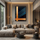 Brushed gold lines frame diagonal planes in deep navy and earthy tones, creating an illusion of volume and filtered light. Art evoking futuristic architecture and industrial elegance—ideal for spaces seeking visual authority, technical sophistication, and a controlled aura of mystery.