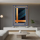 Brushed gold lines frame diagonal planes in deep navy and earthy tones, creating an illusion of volume and filtered light. Art evoking futuristic architecture and industrial elegance—ideal for spaces seeking visual authority, technical sophistication, and a controlled aura of mystery.