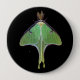Dieser Knopf zeigt die unglaubliche Luna-Motte, eine Limon-grüne, nearktische Sättigungsmotte in der Subfamilie Saturniinae. Mit einer Spannweite von bis zu 1,5 cm zählt dieses schöne Wesen zu den größten Motten Nordamerikas. Diese erwachsene Motte ist gerade aus dem Kokon hervorgegangen und wird auf der Rinde eines Baumstamms zum Trocknen und Verhärten gewartet. Die Erwachsenen essen nicht oder haben keinen Mund. Sie leben nur eine Woche lang und tauchen als Erwachsene auf, um sich zu paaren. Mit der Kalkfarbe und den charakteristischen Augentönen ist dies ein sehr geheimnisvolles, magisches Wesen.