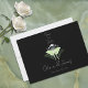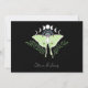 Eine lebendige grüne Lunamotte ist umgeben von Mondphasen und üppigen grünen Blätter auf schwarzem Hintergrund.