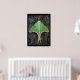 Dieses Plakat zeigt die unglaubliche Luna-Motte, eine Limon-grüne, nearktische Saturnidmotte in der Unterfamilie Saturniinae. Mit einer Spannweite von bis zu 1,5 cm zählt dieses schöne Wesen zu den größten Motten Nordamerikas. Diese erwachsene Motte ist gerade aus dem Kokon hervorgegangen und wird auf der Rinde eines Baumstamms zum Trocknen und Verhärten gewartet. Die Erwachsenen essen nicht oder haben keinen Mund. Sie leben nur eine Woche lang und tauchen als Erwachsene auf, um sich zu paaren. Mit der Kalkfarbe und den charakteristischen Augentönen ist dies ein sehr geheimnisvolles, magisches Wesen.