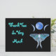 Luna Moth in Aquarellfarbe unter einem blauen Mond und zwei Halbmonde über einem schwarzen Nachthimmel und ein Ort für einen individuellen Dank.