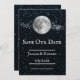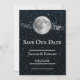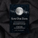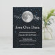 Personalisieren Sie eine einmalige Hochzeitsankündigung mit einem Lunar Save the Date. Das Ankündigungsdesign besticht durch einen Sternenhimmel, der mit einem vollen Mond- und Sternencluster-Pfad geschmückt ist und Text enthält, den Sie mit Ihren Hochzeitstermin-Details personalisieren können. Zusätzliche Ankündigung Datum freihalten für dieses Design in verschiedenen Farben verfügbar.