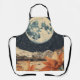 Eine bezaubernde orangefarbene Blume steht hoch unter einem strahlenden Vollmond, Set gegen einen sternhaften Nachthimmel und einen ruhigen Sandberg. Diese Schürze verbindet himmlische Schönheit mit erdiger Wärme und schafft eine traumhafte und rustikale Ästhetik. Ideal für Naturliebhaber, Mondgläser und für diejenigen, die boho und Vintag inspiriert Landschaften schätzen.