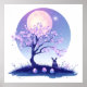 Ein ruhiges Mitternachtswunder mit einem weißen Kaninchen, das auf einem glühenden Vollmond in einer ruhigen Nachtszene blickt.