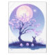 Ein ruhiges Mitternachtswunder mit einem weißen Kaninchen, das auf einem glühenden Vollmond in einer ruhigen Nachtszene blickt.
