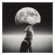 ein einsamer Wolf, seine Silhouette krass gegen den leuchtenden Vollmond. Der Heuschrei des Wolfs hallt die ganze Nacht hindurch.