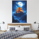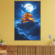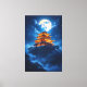 Journey to a world where ancient legends reside. This stunning artwork features a radiant, traditional Chinese pavilion crowning a misty mountaintop. The rich, golden glow of the palace contrasts beautifully with the deep azure sky, twinkling stars, and the dramatic light of the supermoon. Perfect for those who love fantasy, Asian art, and dramatic nightscapes.