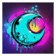Graffiti-Stil Kunstwerk mit einem lebendigen Mond in Blautönen und lila. Der Mond ist mit dynamischen Splash und Tropfen von Farbe dargestellt